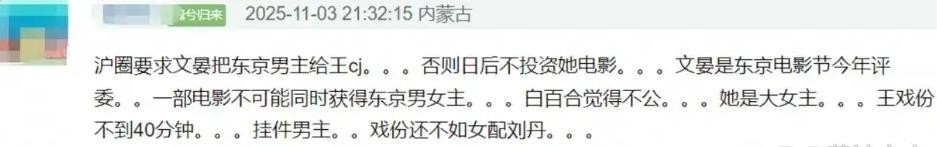 据知情人士透露,某沪圈势力曾向导演文晏施压,要求必须保送王传君获奖,否则后续资金将全面断供。